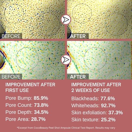 Watch your pores transform, day by day. Each time you apply CocoBeauty's Peel Shot Glow Rice Ampoule Duo, you're not just applying skincare—you're reclaiming confidence.